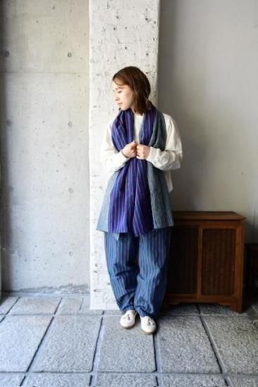 会津木綿はほどよい厚みがありふっくらとした質感 なので寒い季節も温かく、 夏はミニストールの2倍のサイズなので肩からすっぽ りとかけて日よけや冷房除けにも。