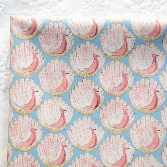 (送料無料・ハギレセール)輸入リバティ ザピーコックスオブグランサムホール ブルー 15cm×15cm