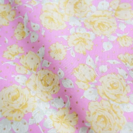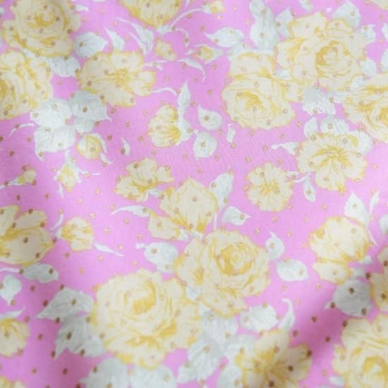 輸入リバティ カーラインラブ イエローピンク ゴールドラメ Liberty Tana Lawn